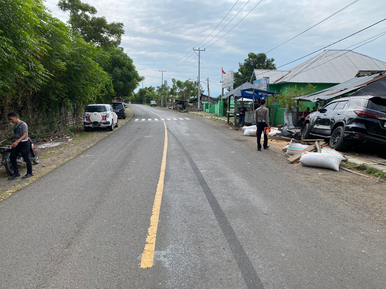 Menurut keterangan resmi yang disampaikan melalui Kasi Humas Polres Dompu, AKP Zuharis, S.H., kecelakaan bermula saat kendaraan Toyota Fortuner yang dikemudikan oleh seorang pria berinisial M.N. (47) asal Kecamatan Belo, Kabupaten Bima, melaju dari arah Dompu menuju Sumbawa dengan kecepatan tinggi. Saat melewati wilayah Dusun Pali, kendaraan tersebut diduga kehilangan kendali, keluar jalur, dan menabrak dua kios milik warga sebelum akhirnya mengenai pejalan kaki yang sedang berada di pinggir jalan.