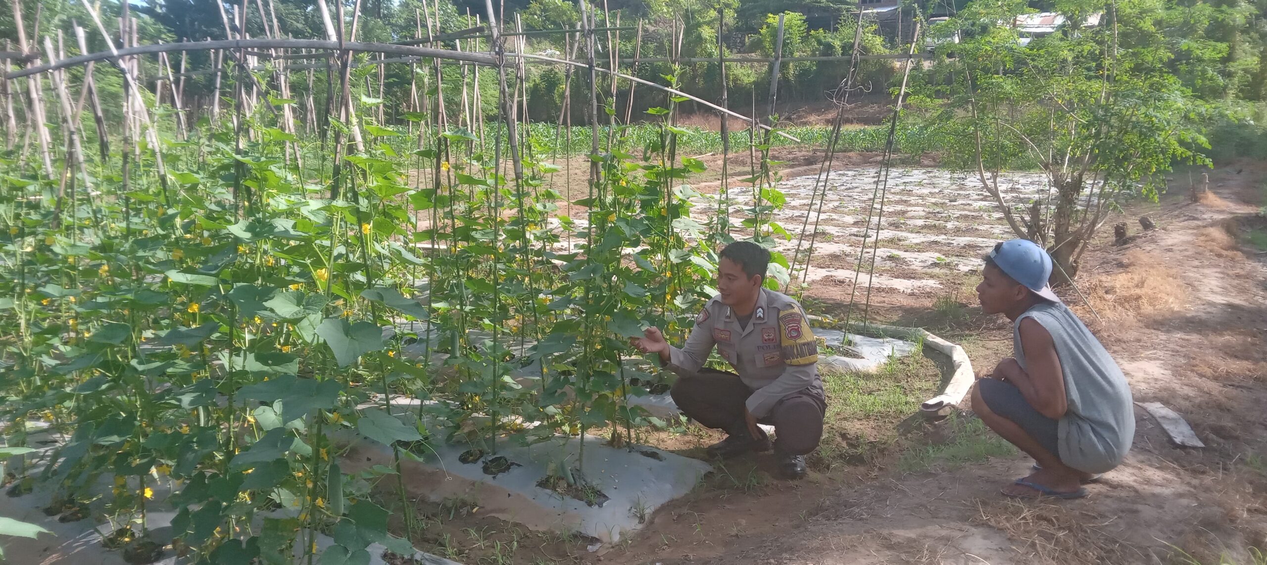 Sumbawa Barat, NTB — Dalam rangka mendukung program pemerintah terkait ketahanan pangan dan merealisasikan Asta Cita Swasembada Pangan, Bhabinkamtibmas Desa Belo, Kecamatan Jereweh, Briptu Syarifudin, melaksanakan kegiatan pendampingan dan monitoring terhadap warganya yang sedang mengelola tanaman mentimun di lahan pertanian milik pribadi.
