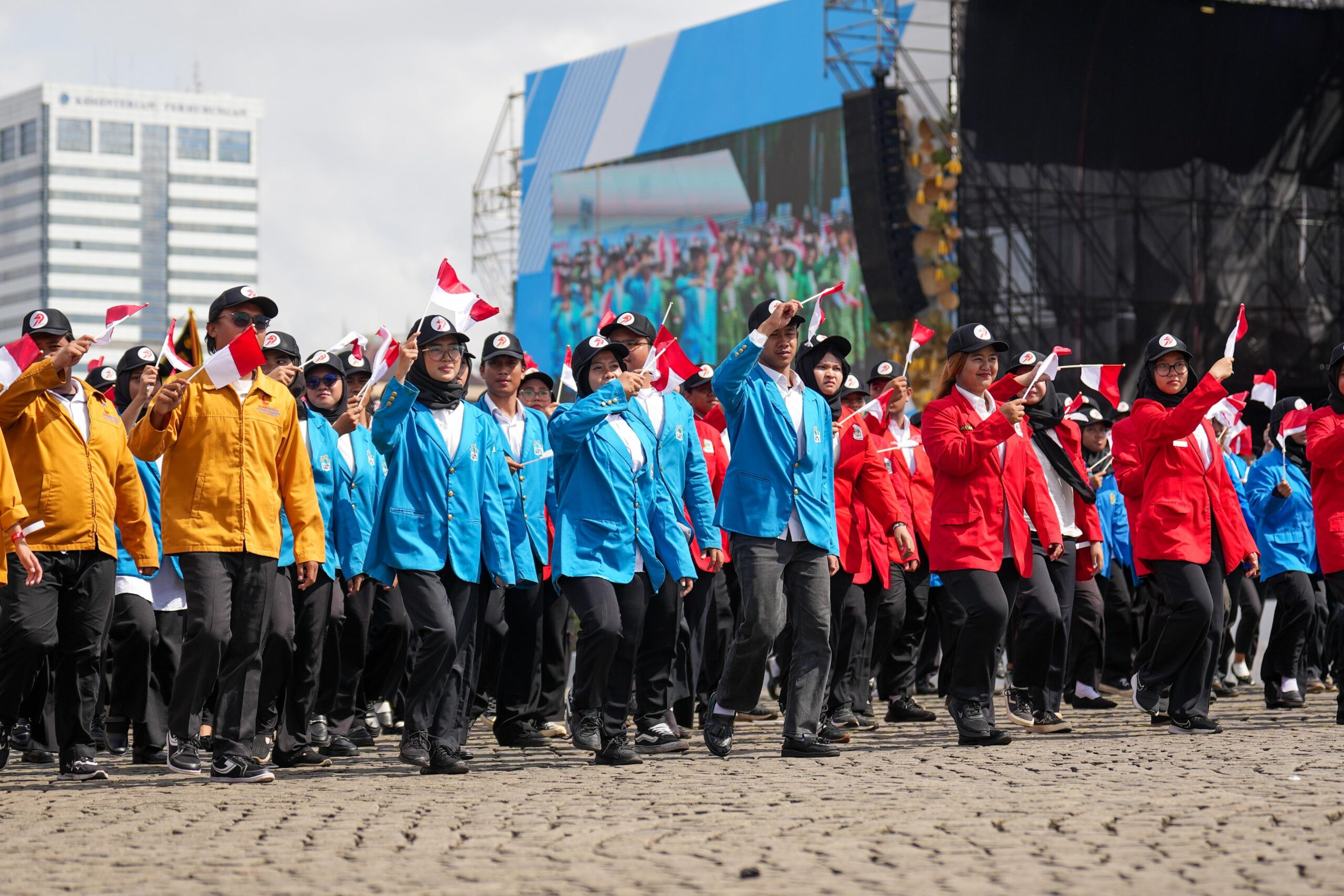 Di barisan akhir, ada kelompok petani ikut dalam defile hari ini. Mereka membawa jagung di tangannya sebagai bukti ketahanan pangan yang sudah dihadirkan.
