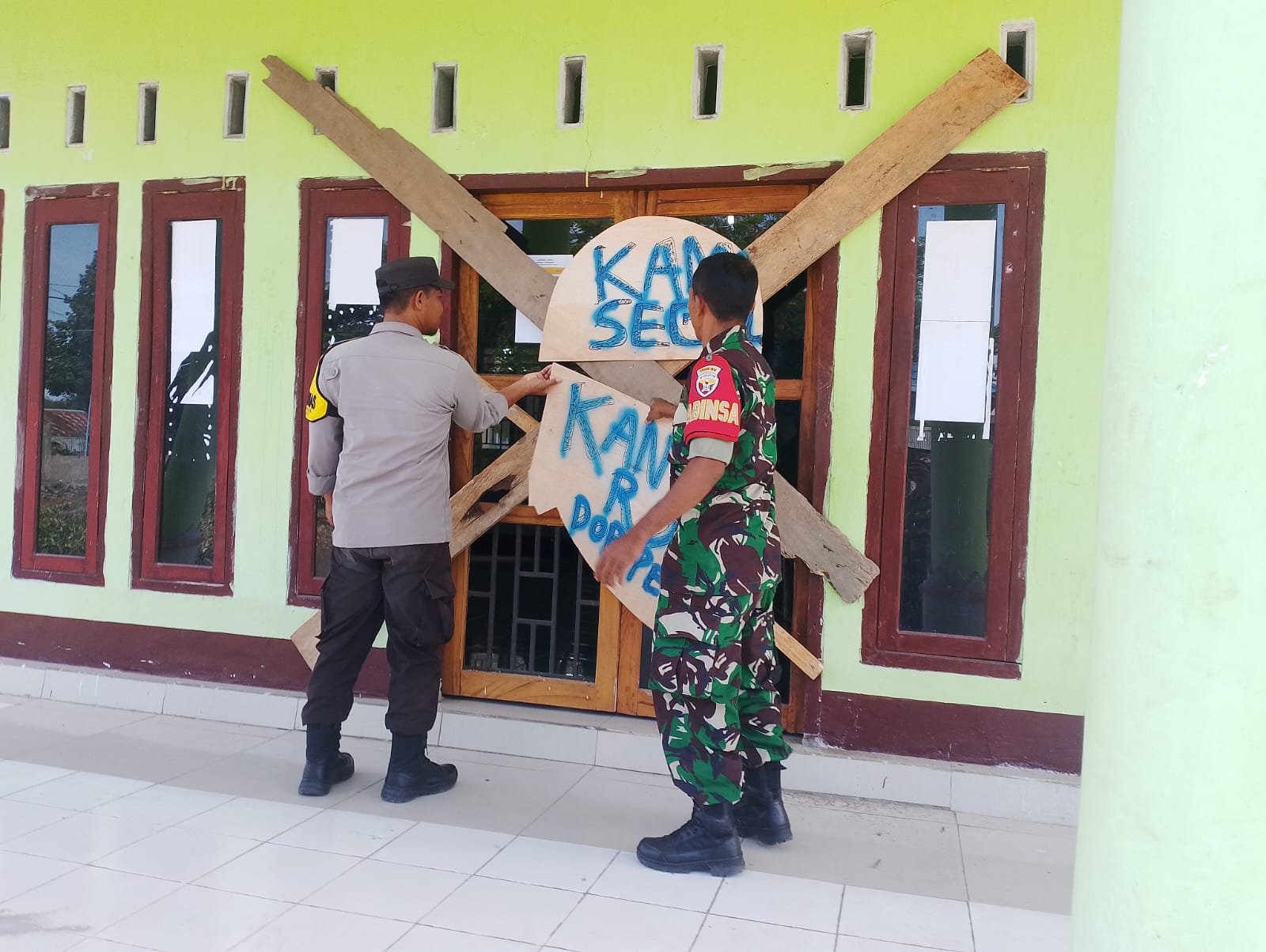 apolsek Pekat IPTU Agustamin, S.H. bersama Anggota Pospol Doropeti dan Bhabinkamtibmas segera turun ke lokasi melakukan penggalangan dan mempertemukan pihak yang bersengketa dengan pemerintah desa.