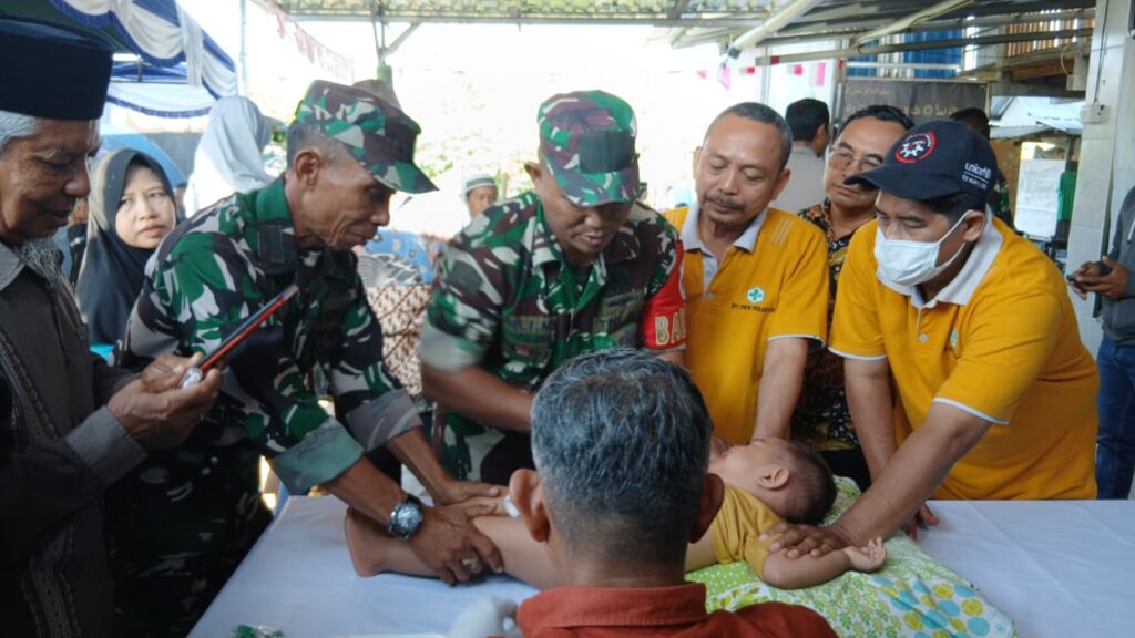 Lombok Barat, NTB – Menyambut Hari Ulang Tahun (HUT) ke-80 Tentara Nasional Indonesia (TNI), Komando Rayon Militer (Koramil) 1606-08/Narmada bersama tim relawan Sarikat Pengolahan Air Minum Masyarakat (SAR PAMM) menggelar kegiatan sunat massal gratis bagi anak-anak di Desa Langko, Kecamatan Lingsar, Lombok Barat, Minggu (5/10/2025).