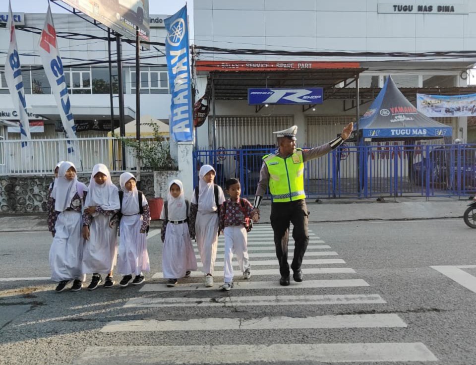 Kota Bima, NTB (22 oktober 2025) – Dalam upaya memberikan pelayanan prima kepada masyarakat serta menjaga kelancaran arus lalu lintas di pagi hari, Satuan Lalu Lintas (Satlantas) Polres Bima Kota melaksanakan kegiatan Rawan Pagi dengan membantu menyeberangkan pejalan kaki, anak-anak sekolah, dan pengguna jalan lainnya.