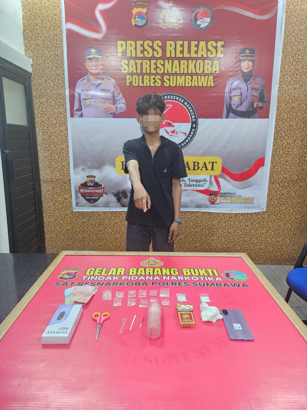 Kapolres Sumbawa AKBP Marieta Dwi Ardhini, S.H., S.I.K., melalui Kasat Resnarkoba IPTU Harirustaman, S.H., menegaskan penangkapan ini merupakan respons cepat terhadap keresahan masyarakat. “Berdasarkan laporan masyarakat mengenai seringnya terjadi transaksi sabu di sebuah kos-kosan di Desa Luar, Alas, Tim Opsnal bergerak cepat. Penangkapan terduga pelaku S (21 tahun) ini berhasil mengamankan barang bukti sabu dengan berat bruto keseluruhan 11,92 gram,” tegas Kasat.