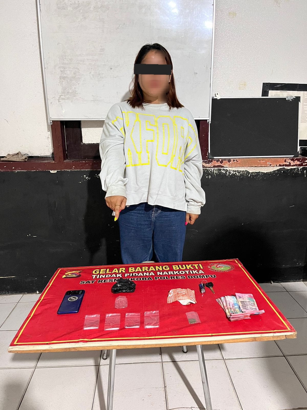 Komitmen Polres Dompu dalam memberantas peredaran narkotika kembali dibuktikan. Tim Opsnal Satresnarkoba Polres Dompu berhasil mengamankan satu orang perempuan terduga pelaku tindak pidana narkotika jenis sabu dan ganja, pada Kamis (18/12/2025) sekitar pukul 01.00 Wita, di jalan raya Lingkungan Bali Barat, Kelurahan Bali I, Kecamatan Dompu, Kabupaten Dompu.