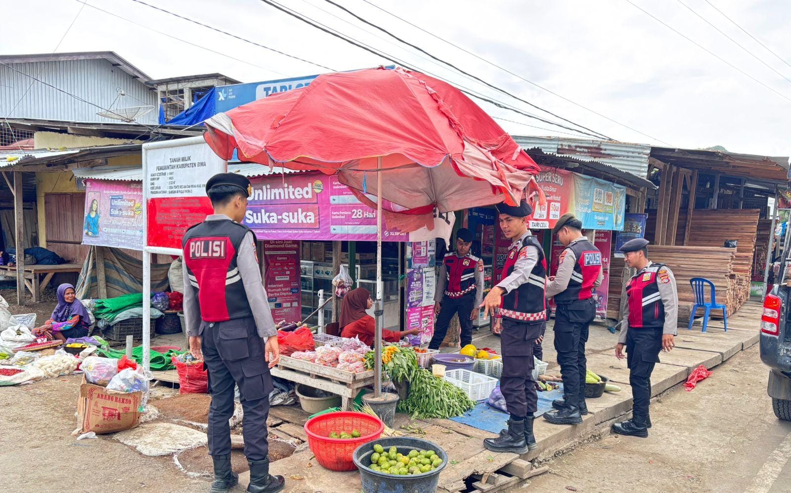 Sejumlah tempat keramaian seperti terminal, pasar, Pusat perbelanjaan hingga pemukiman warga dan kantor perbankan di datangi oleh Satsamapta Polres Bima Polda NTB.