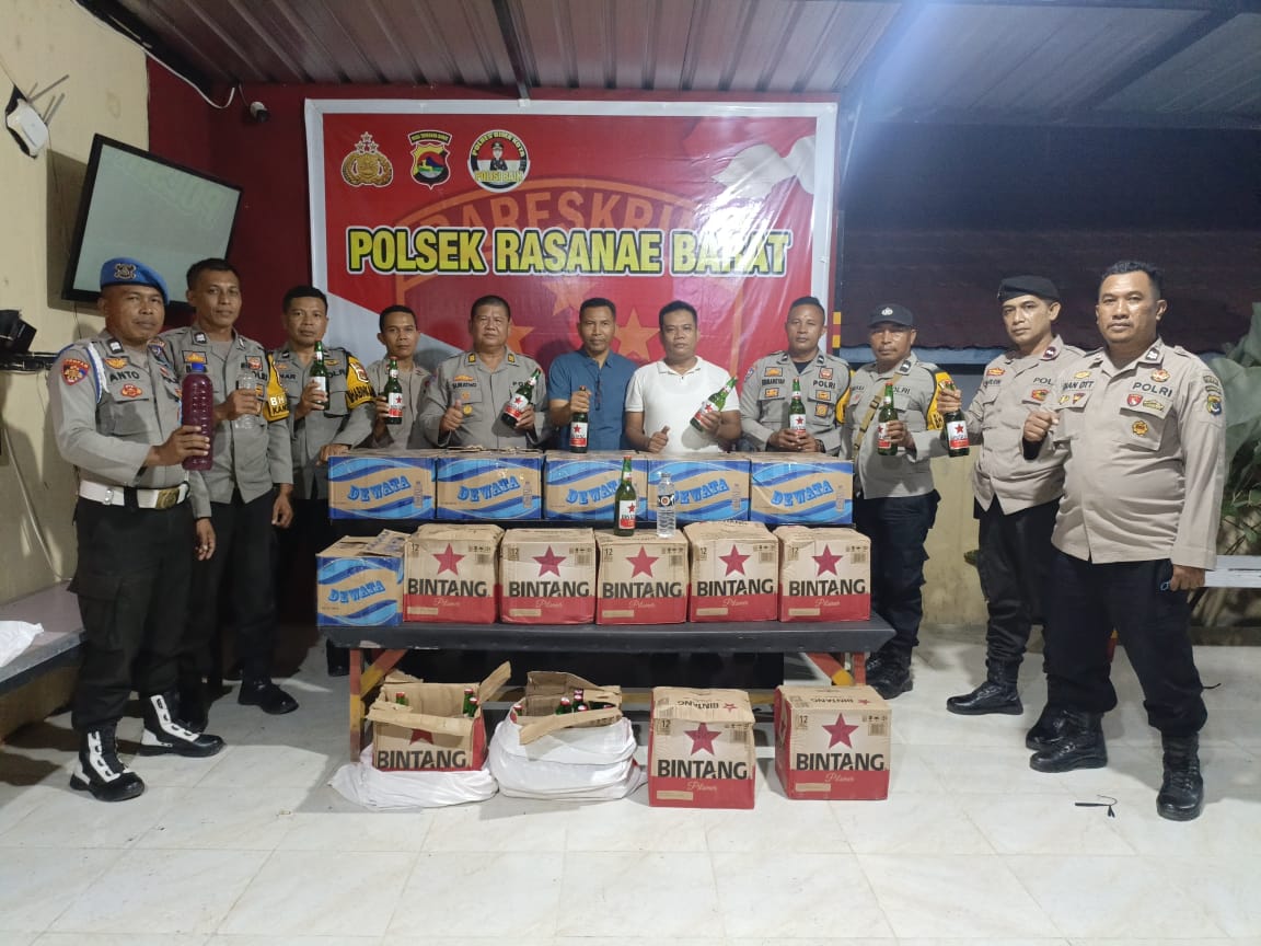 Polsek Rasanae Barat Intensifkan Patroli KRYD, Ratusan Botol Miras Diamankan