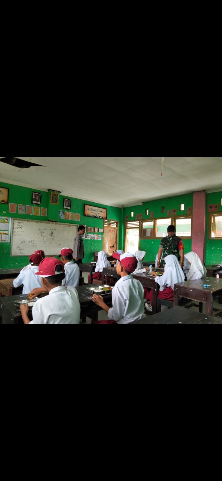 Dalam pelaksanaannya, BRIPKA Syaiful Fahmi turut mengawal sekaligus mendampingi proses pendistribusian makanan bergizi kepada para siswa yang menjadi sasaran program. Kehadiran anggota Polri di lokasi tidak hanya memastikan kegiatan berjalan aman dan lancar, namun juga memberikan rasa nyaman bagi pihak sekolah dan para siswa.