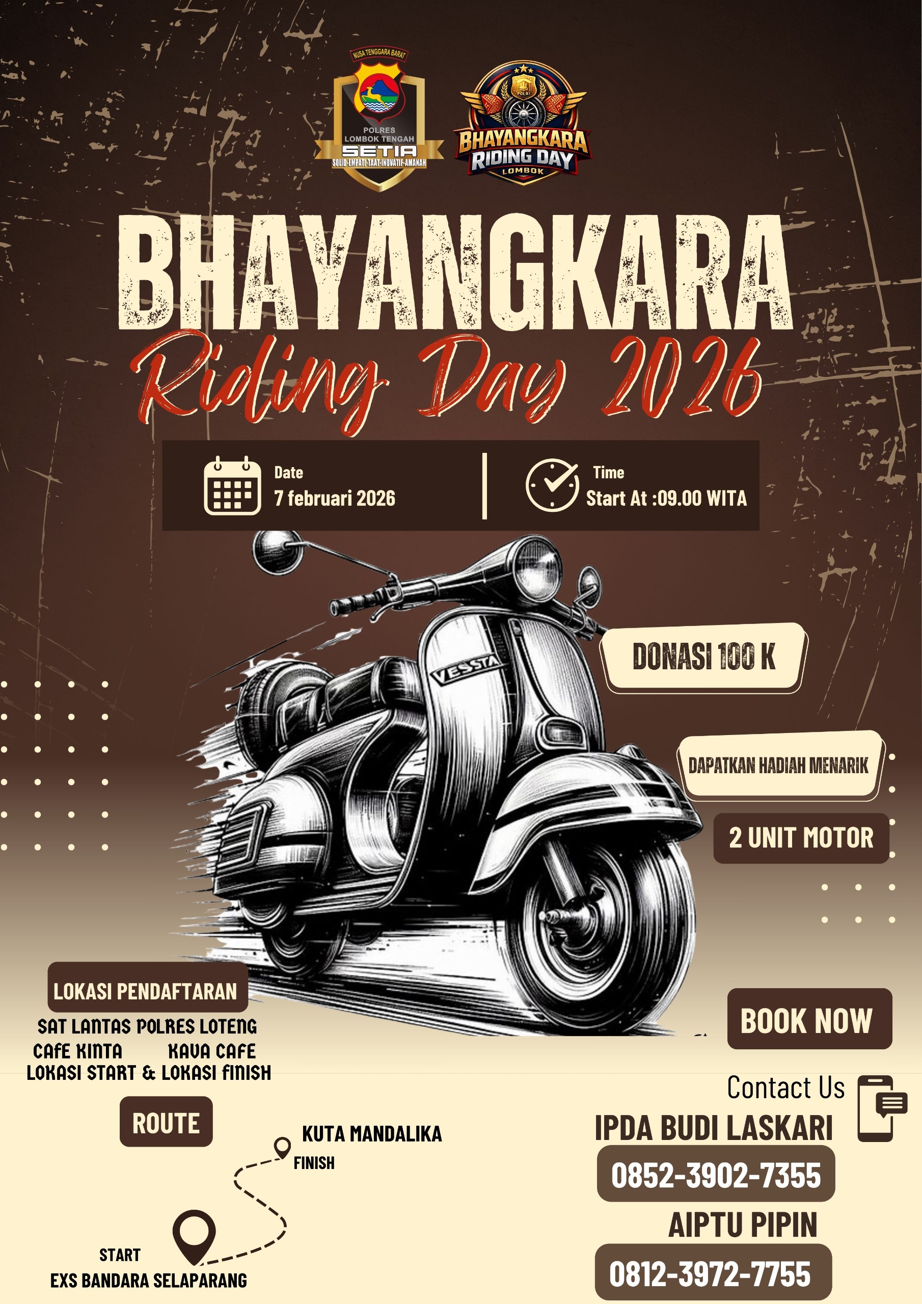 Lombok Tengah – Polres Lombok Tengah menggelar Bhayangkara Riding Day 2026 yang akan berlangsung pada Sabtu, 7 Februari 2026, sebagai bagian dari upaya menyemarakkan Festival Bau Nyale sekaligus mempererat silaturahmi antara Polri, komunitas motor, dan masyarakat.
