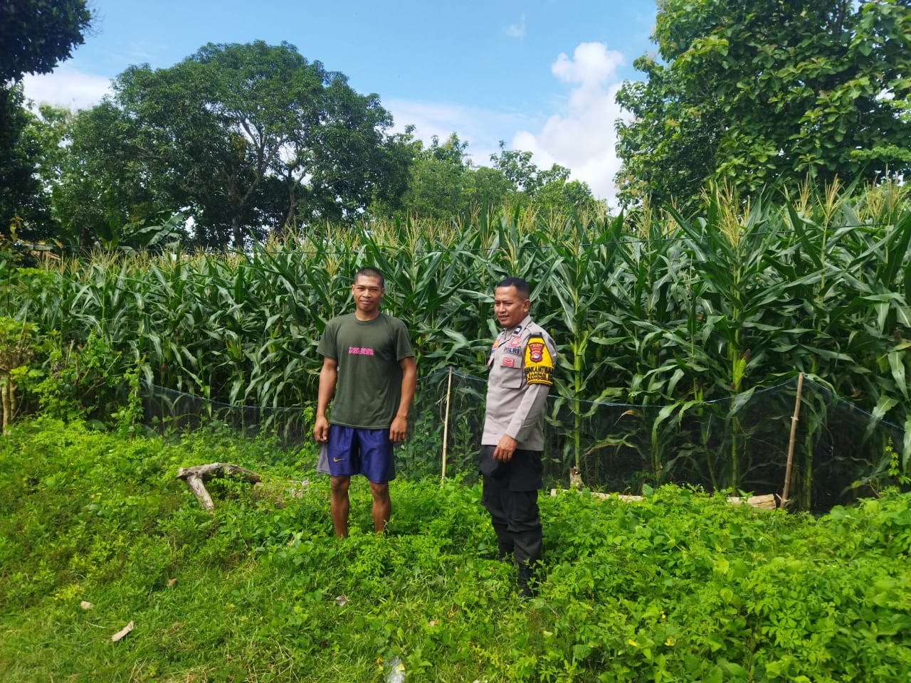 Dalam rangka mendukung Program Ketahanan Pangan Nasional menuju Indonesia Emas, Bhabinkamtibmas Desa Kampasi Meci Polsek Manggelewa, AIPTU Lalu Sapri Rahman, melaksanakan kegiatan pemantauan lahan pertanian jagung milik warga binaan.