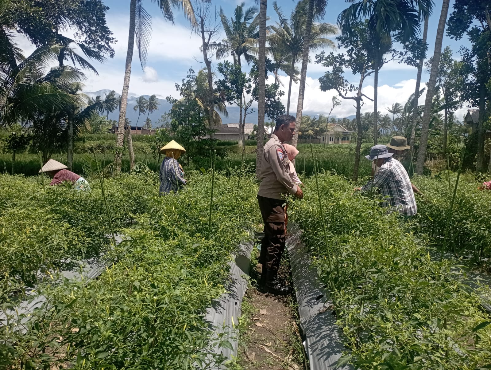 Dalam pelaksanaannya, Aipda Rodi H. bersama warga melakukan pengecekan terhadap tanaman cabe yang dibudidayakan di lahan tersebut. Tanaman cabe menjadi salah satu komoditas unggulan yang diharapkan mampu menunjang kebutuhan pangan masyarakat sekaligus meningkatkan perekonomian warga setempat.