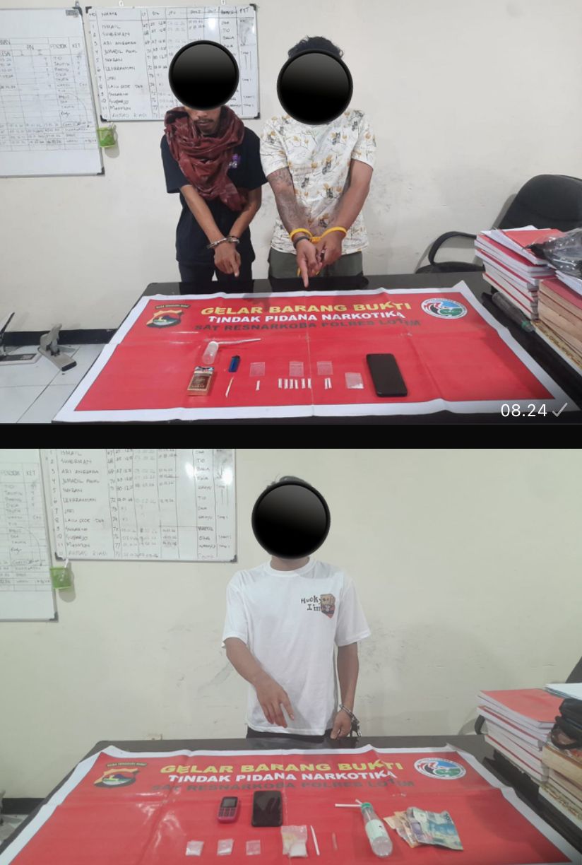 Pengungkapan pertama dilakukan sekitar pukul 15.00 Wita di BTN RSS Lendang Bedurik, Kelurahan Sekarteja, Kecamatan Selong. Operasi yang dipimpin Kanit II Satresnarkoba IPDA Rizal Hidayat bersama empat personel itu mengamankan dua pria berinisial ASP dan LMS di rumah milik LMS. Dari hasil penggeledahan di kamar tidur lantai atas, petugas menemukan 10 poket diduga sabu seberat bruto 3,88 gram yang disimpan dalam bungkus rokok, serta alat hisap, korek api gas, sekop plastik dan satu unit handphone android.