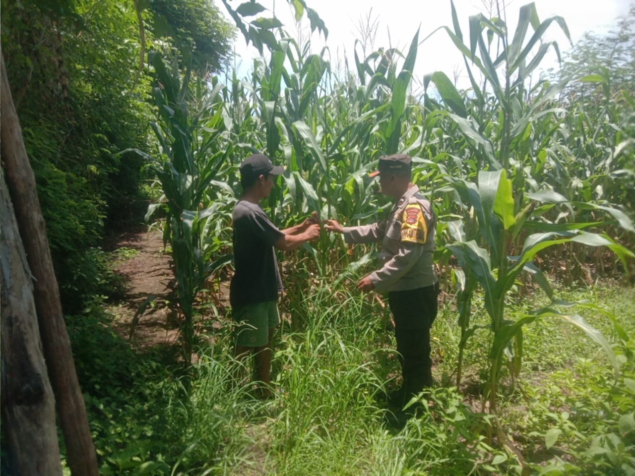 “Aipda Alfian Haris turun langsung mendampingi warga yang sedang mengecek pertumbuhan jagung. Petugas memberikan motivasi agar pemilik lahan konsisten dalam melakukan perawatan tanaman secara optimal, mulai dari pembersihan gulma hingga pemupukan yang tepat, agar hasil panen nanti bisa maksimal,” ungkap Kapolsek.