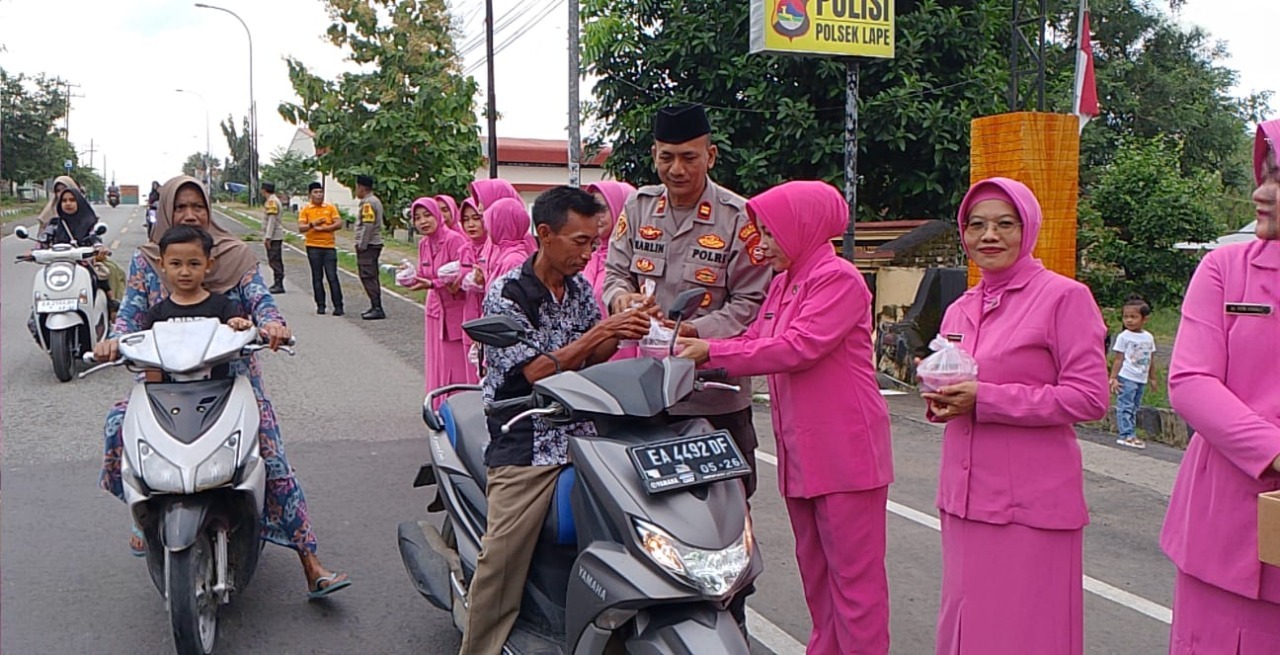Semangat Berbagi di Bulan Suci, Polsek Lape dan Bhayangkari Tebar 200 Paket Takjil untuk Pengguna Jalan