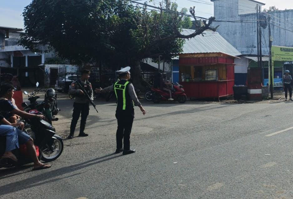 Terlihat sejumlah personel Satgas Kamseltibcar lantas melakukan pengaturan arus lalulintas seperti di depan pos Yan, pos PAM Tente dan Pos PAM Bolo pada Selasa (24/03/26) sekira pukul 10.00. Wita pagi tadi.