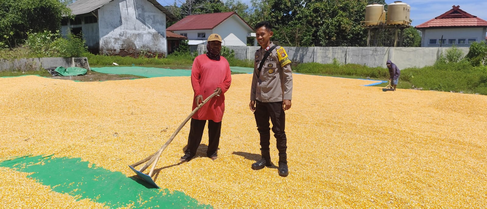 Pantau Proses Penjemuran Jagung, Bhabinkamtibmas Dukung Ketahanan Pangan di Dompu