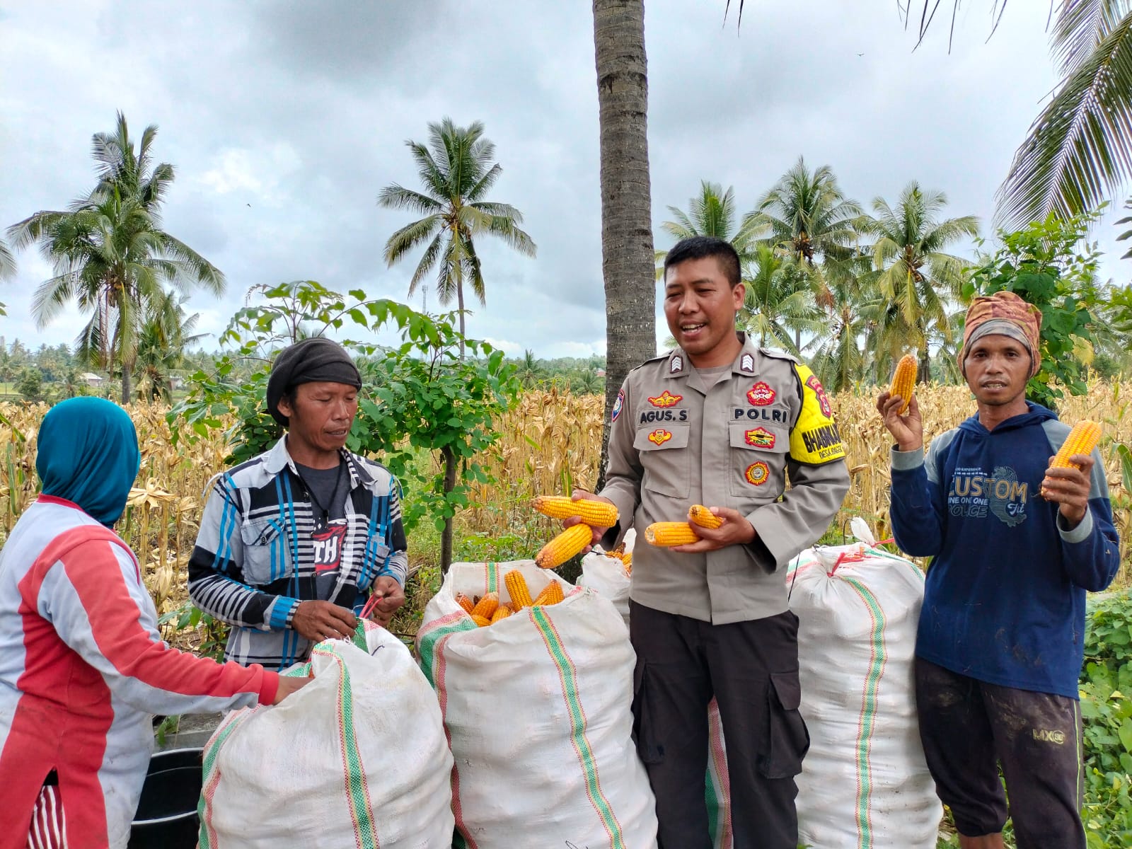 LOMBOK TIMUR – Bhabinkamtibmas Desa Bagik Papan, Bripka Agus Salim, melaksanakan kegiatan silaturahmi sekaligus pengecekan panen jagung milik warga di Dusun Dasan Imba, Desa Bagik Papan, Kecamatan Pringgabaya, Kabupaten Lombok Timur, Selasa (31/3/2026).