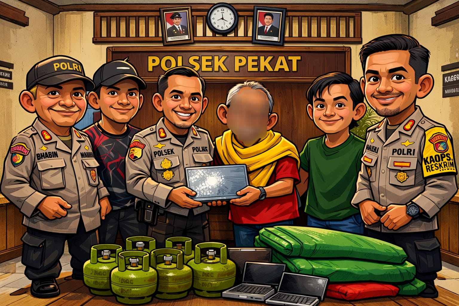 “Pelaku mengakui seluruh perbuatannya, baik pencurian di rumah korban Bambang maupun di TKP lainnya. Seluruh barang bukti telah kami amankan di Polsek Pekat untuk proses hukum lebih lanjut,” jelas IPTU Jubaidin.