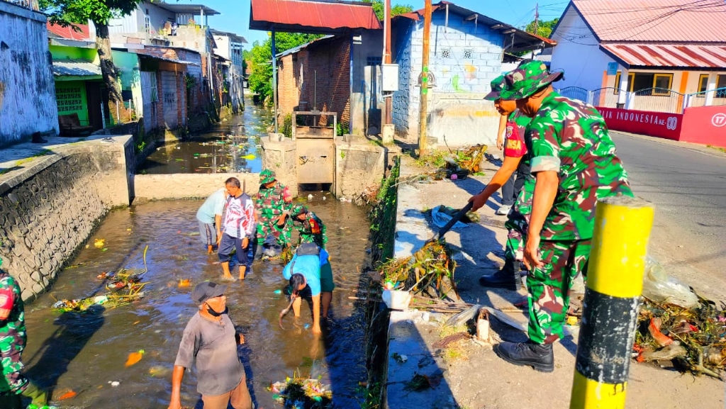 Mataram, NTB — Suasana berbeda tampak di Lingkungan Karang Kelok Baru, Kelurahan Monjok Barat, Kota Mataram. Sejak pagi hari, sejumlah anggota Bintara Pembina Desa (Babinsa) Komando Rayon Militer (Koramil) 1606-05/Mataram bersama warga dan staf kelurahan turun langsung ke bantaran kali, membawa cangkul, sekop, dan karung, memulai aksi nyata membersihkan aliran sungai dari tumpukan sampah dan endapan lumpur, Kamis (2/4/2026).
