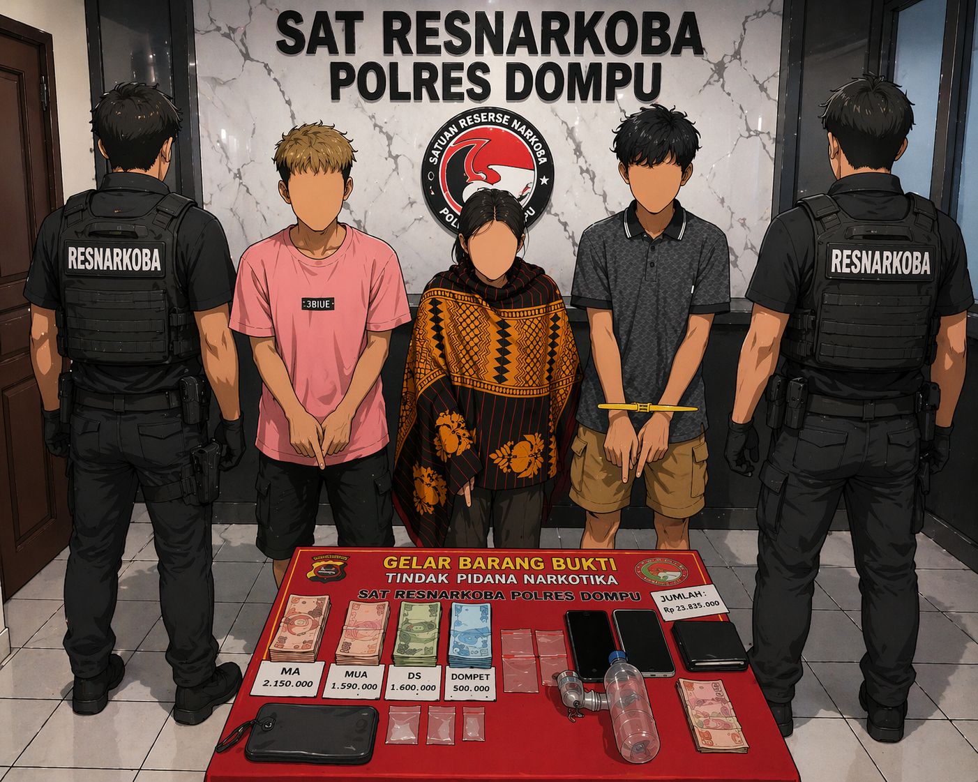 Satuan Reserse Narkoba Polres Dompu kembali menunjukkan komitmennya dalam memberantas peredaran narkotika di wilayah hukum Kabupaten Dompu. Kali ini, tiga orang terduga pelaku tindak pidana narkotika jenis sabu berhasil diamankan dalam sebuah operasi di Kecamatan Kempo.