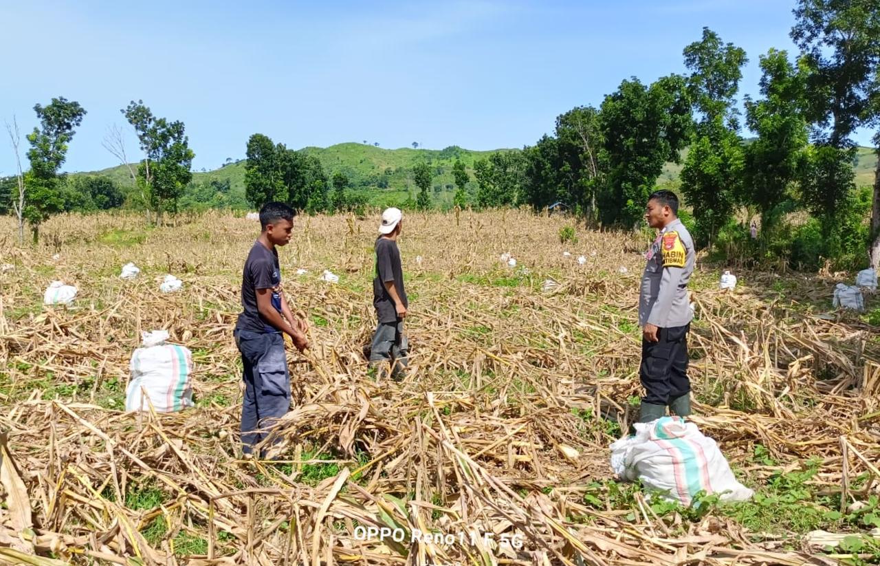 Bhabinkamtibmas Desa Adu Laksanakan Pemantauan Panen jagung Menuju Indonesia Emas