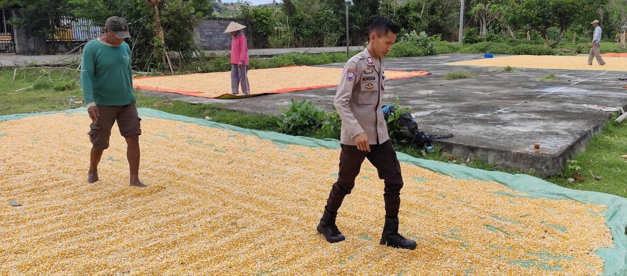 Bhabinkamtibmas Pantau Penjemuran Jagung Warga, Dukung Ketahanan Pangan Nasional