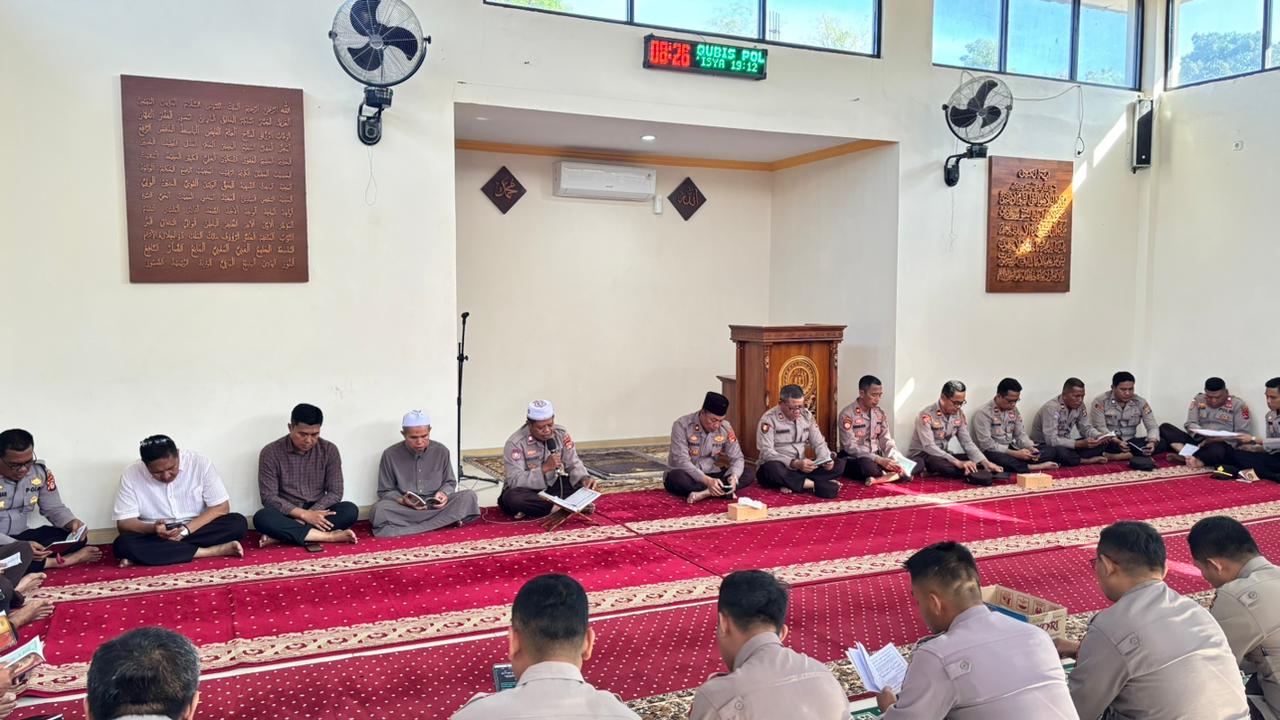 Rangkaian kegiatan diawali dengan masuknya seluruh personel ke dalam Masjid Jabal Qubis. Suasana khidmat langsung terasa saat personel bersama-sama membaca Surat Yasin yang dipandu oleh Aiptu Asnawi dari Sat Binmas.