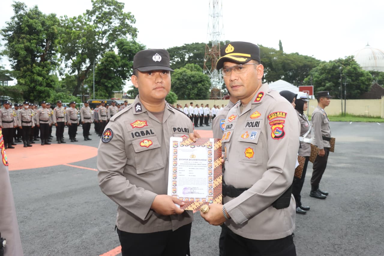 ‎‎Lombok Tengah, (NTB) – Kapolres Lombok Tengah AKBP Eko Yusmiarto, S.I.K memberikan penghargaan kepada 17 personel yang dinilai berprestasi dalam pelaksanaan tugas kepolisian dibidang administrasi, operasional maupun olahraga, Senin (24/4).